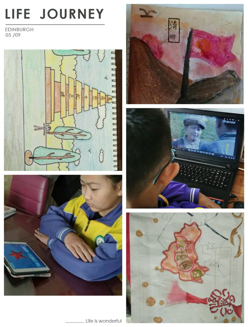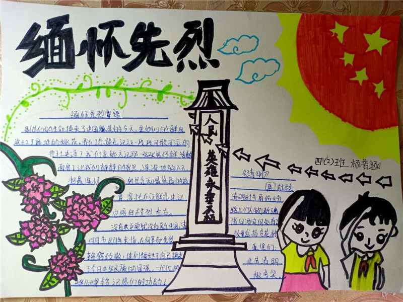 孩子们通过上网搜集清明节的有关知识,感受传统文化魅力,了解老一辈无产阶级革命家进行伟大斗争的生动故事,先辈们的英雄事迹,并制作了以“致敬·2020清明祭英烈”为主题的节日小报。