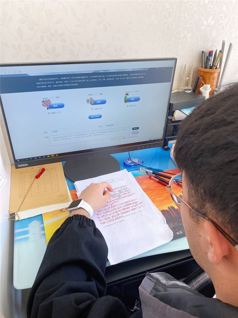 图为学生登陆鄂尔多斯文明网寄语留言缅怀先烈