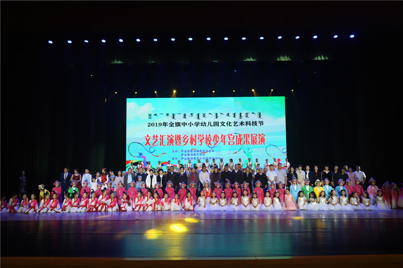 图为全旗中小学幼儿园文化艺术科技节文艺汇演暨乡村学校少年宫运行成果展演晚会