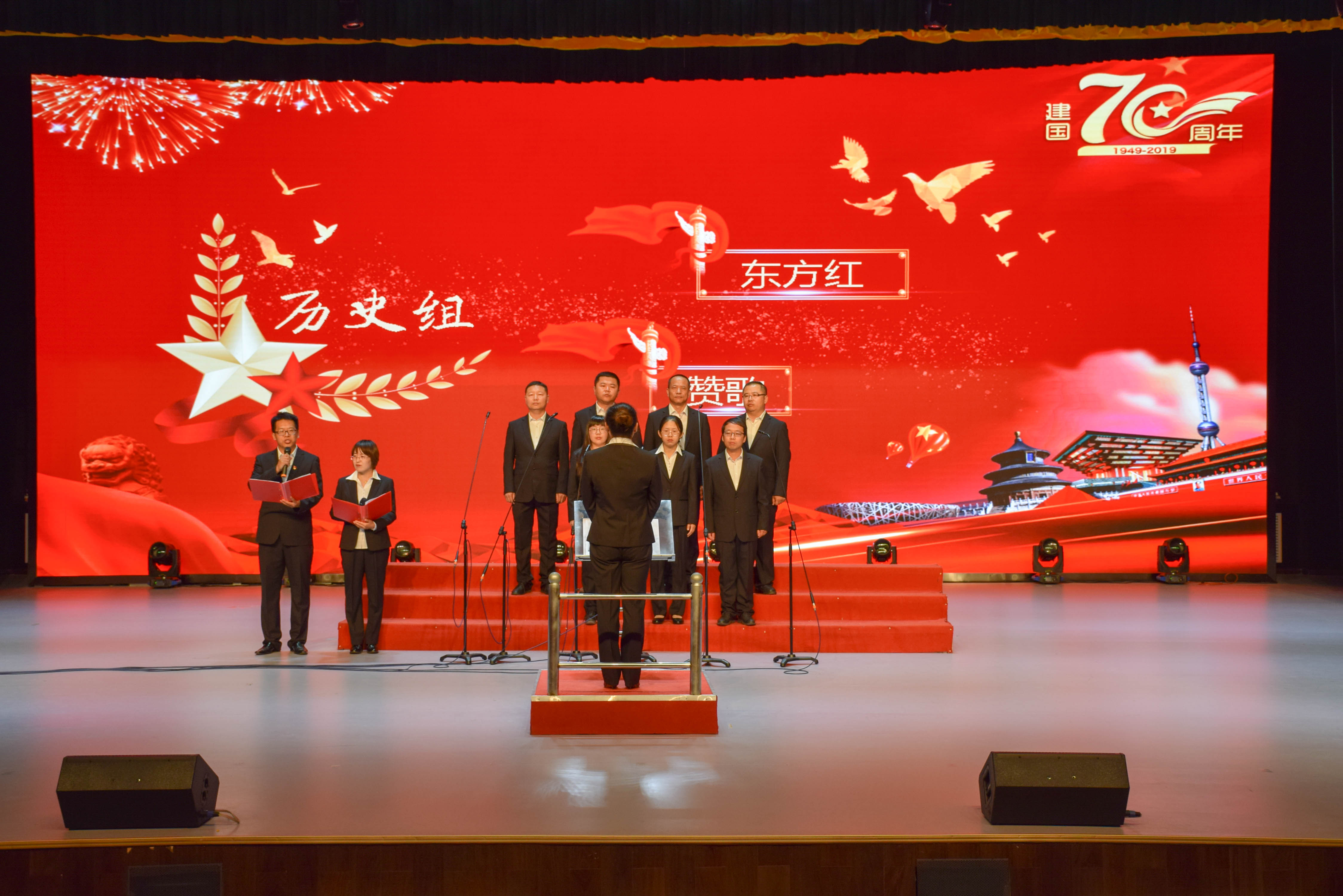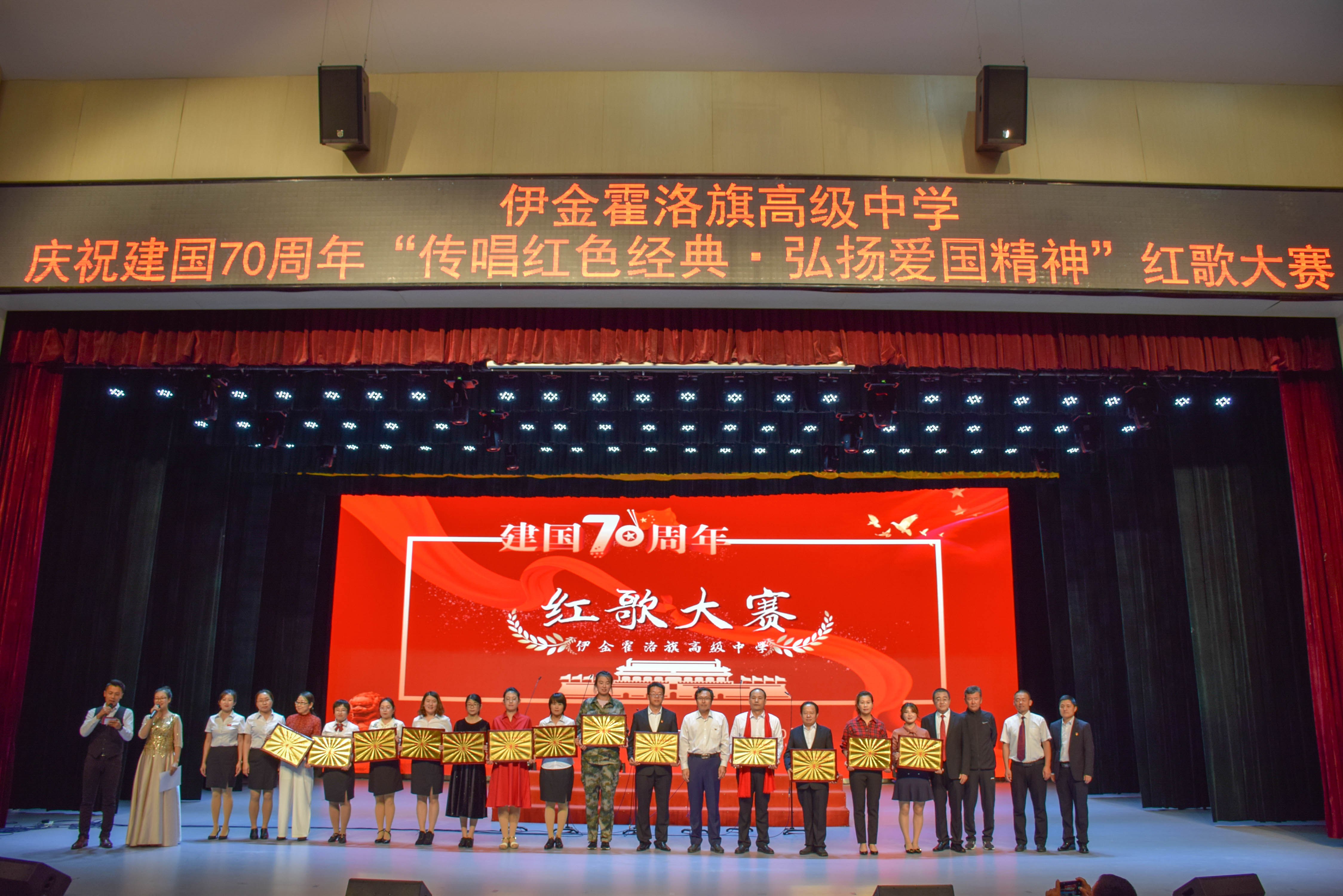 唱祖国,唱出我们的中国心。9月28日、9月29日伊金霍洛旗高级中学举办以“庆祝新中国成立70”周年为主题的歌咏比赛,比赛分为教师组和学生组两个组别,比赛以合唱、二重唱、独唱等形式进行,此次比赛很大的提高了教职工和学生的爱国热情,筑牢了教职工队伍建设,加强了团队之间的合作。
