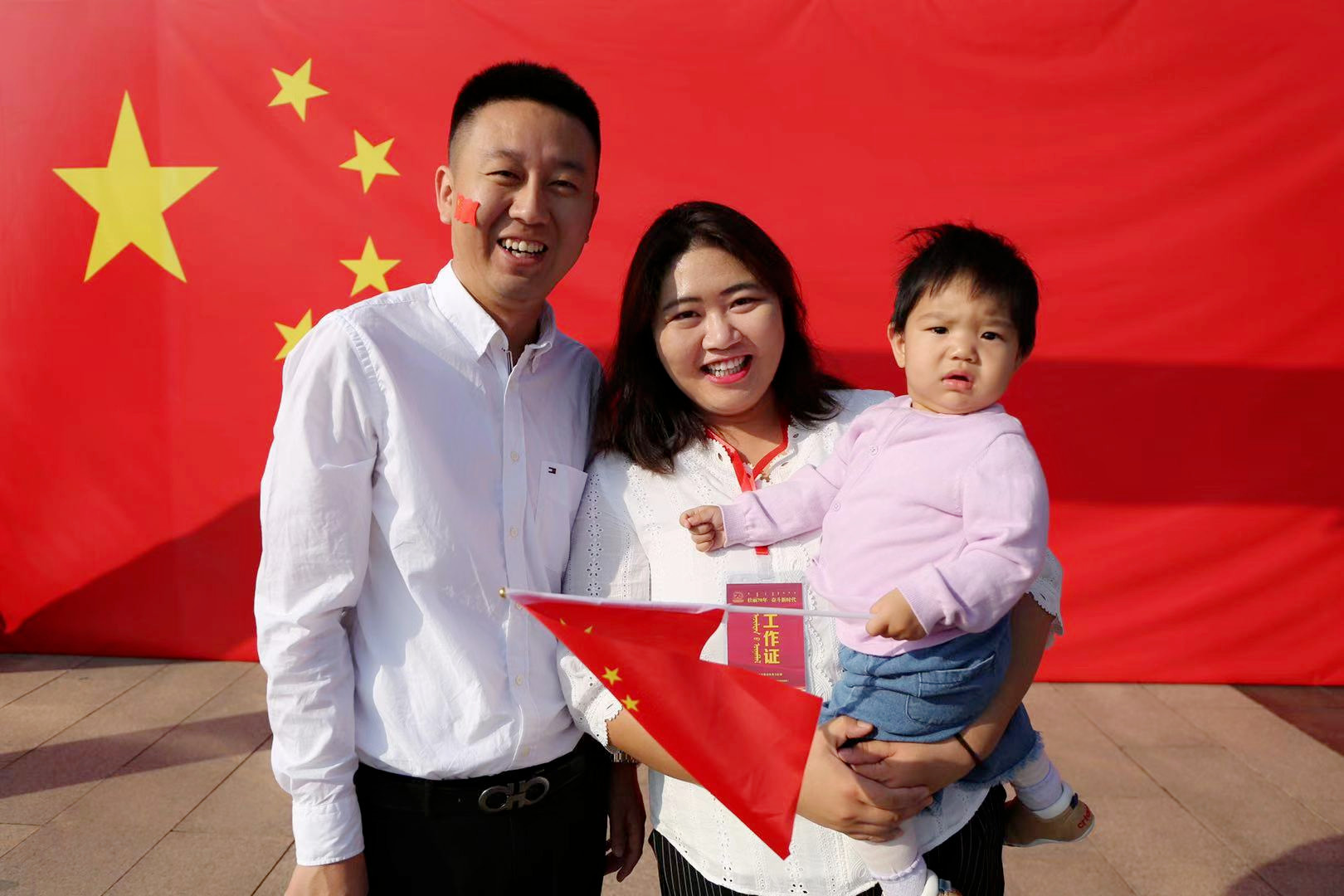 图为伊金霍洛旗升旗仪式后“我与国旗同框”合影留念